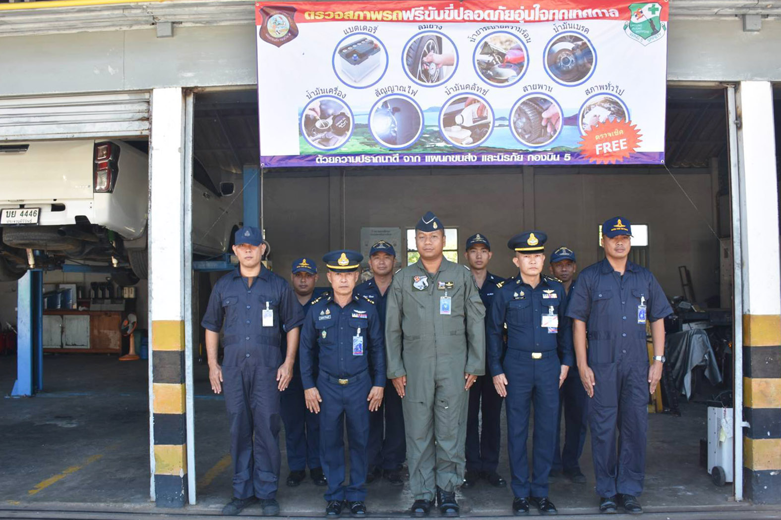 ตรวจความพร้อมยานพาหนะ…เมื่อวันที่ 22 ธ.ค.68 ที่แผนกขนส่ง กองบิน 5 อำเภอเมือง จ.ประจวบฯ นาวาอากาศเอก รัตนศักดิ์ โพธิ์แก้ว ผู้บังคับการกองบิน 5 มอบหมายให้ นาวาอากาศเอก ณัฐวุฒิ จันทรจิต รองผู้บังคับการกองบิน 5 ตรวจเยี่ยมจุดตรวจความพร้อมยานพาหนะของข้าราชการ ลูกจ้าง และพนักงานราชการ เพื่อเตรียมความพร้อมก่อนการเดินทางในช่วงเทศกาลปีใหม่ ช่วยลดความเสี่ยงในการเกิดอุบัติเหตุบนท้องถนนและสร้างความสบายใจแก่กำลังพลกองบิน 5.