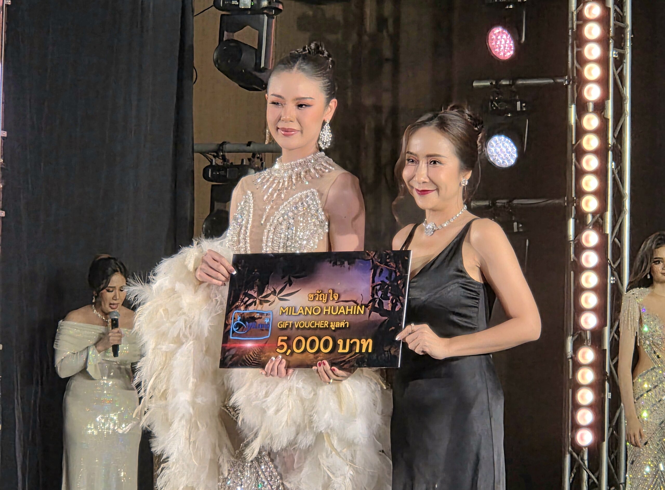 การประกวดจัดขึ้นอย่างหรูหราค่ำคืนวันที่ 20 กันยายน 2568 ที่ผ่านมา ที่โรงแรม เดอะ เกษตร หัวหิน จ.ประจวบฯ ท่ามกลางแขกผู้มีเกียรติจำนวนมากร่วมเป็นสักขีพยาน อาทิ นายปรีดา สุขใจ รองผู้ว่าราชการ จ.ประจวบฯ น.ส.วรกานต์ ถาวร รอง ผอ.ททท.สำนักงานประจวบฯ พ.ต.อ.กัมปนาท ณ วิชัย ผกก.สภ.หัวหิน นายมนตรี มานิชพงษ์ ปลัดอาวุโสอำเภอหัวหิน นายกิติพงษ์ สิริเพชรเกษม นายกสมาคมธุรกิจการท่องเที่ยวหัวหิน/ชะอำ นางวาสนา ศรีกาญจนา ที่ปรึกษาสมาคมธุรกิจการท่องเที่ยวหัวหิน/ชะอำ พร้อมครอบครัวมิสแกรนด์ไทยแลนด์ นำโดย “กชเบล ศรัณย์รัชต์” มิสแกรนด์ไทยแลน์ 2025 “เฌอเอม” ชญาธนุส ศรทัตต์ รองอันดับ 1 มิสแกรนด์ไทยแลนด์ 2025 “เจมม่า” สุธิดา ยาร์โนส มิสแกรนด์ประจวบคีรีขันธ์ 2025 “คิม” จิราพัชร ไฮท์มันน์ มิสแกรนด์สมุทรปราการ 2025 และครอบครัวมิสแกรนด์ มาร่วมให้กำลังใจและแสดงโชว์สุดพิเศษ โดยทั้งสองสาวจะก้าวขึ้นเป็นตัวแทนของจังหวัดเพื่อเข้าชิงชัยบนเวที Miss Grand Thailand 2026 ในเร็ว ๆ นี้ เพื่อเฟ้นหาสาวงามหนึ่งเดียวที่จะได้สิทธิ์ไปชิงมงกุฎบนเวทีระดับนานาชาติ.