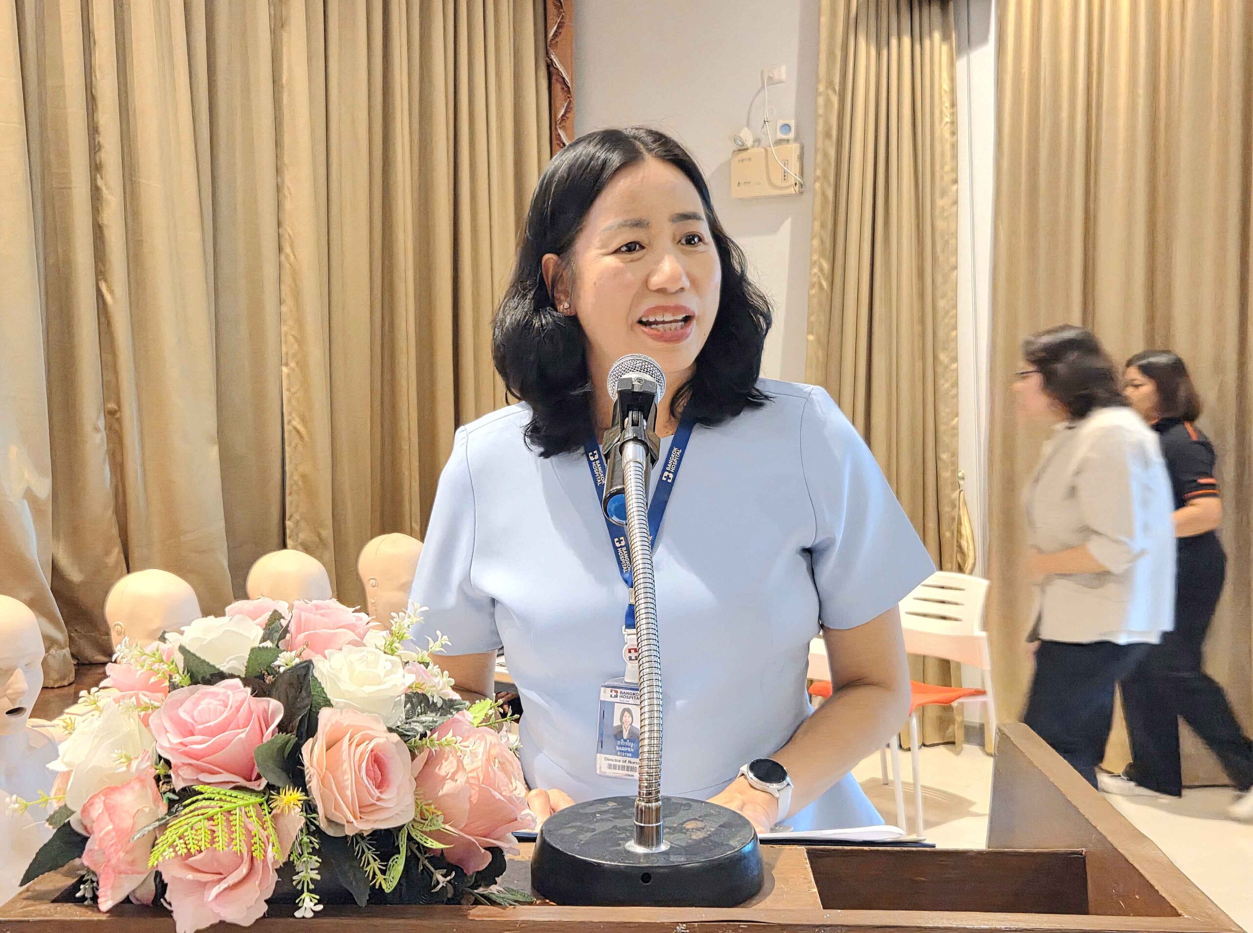 นางศศิเพ็ญ ปิยสุทธิ์ กล่าวว่า โรงพยาบาลกรุงเทพหัวหิน จัดการอบรมนี้ตามนโยบายของบริษัท กรุงเทพดุสิตเวชการ จํากัด (มหาชน) หรือ BDMS มาอย่างต่อเนื่อง โดยผู้เข้าการอบรมจะมีความรู้ในการช่วยชีวิตผู้ป่วยเบื้องต้น เมื่อเกิดเหตุฉุกเฉินเร่งด่วนได้อย่างถูกวิธี ก่อนส่งถึงมือแพทย์ การอบรมจะมีทั้งภาคทฤษฎีและฝึกปฏิบัติในการช่วยเหลือผู้ที่หัวใจหยุดเต้นด้วยการปั๊มหัวใจ (CPR) ที่ถูกวิธี การใช้เครื่องกระตุกหัวใจด้วยไฟฟ้าชนิดอัตโนมัติ (AED) และการช่วยเหลือผู้ป่วยสำลักอุดกั้นทางเดินหายใจ โดยมีผู้เชี่ยวชาญจากโรงพยาบาลกรุงเทพหัวหิน และภาคีเครือข่าย อาทิ เทศบาลนครหัวหิน มูลนิธิสว่างหัวหินธรรมสถาน และมูลนิธิเพชรเกษมหัวหิน มาเป็นวิทยากรให้ความรู้ ตามแนวคิดที่ว่า แม้ไม่ได้เป็นบุคลากรทางการแพทย์ หากเรามีองค์ความรู้และมีความมั่นใจ ผ่านการอบรมและฝึกปฏิบัติจริง โดยวิทยากรผู้เชี่ยวชาญภายใต้หลักการที่เป็นสากล.