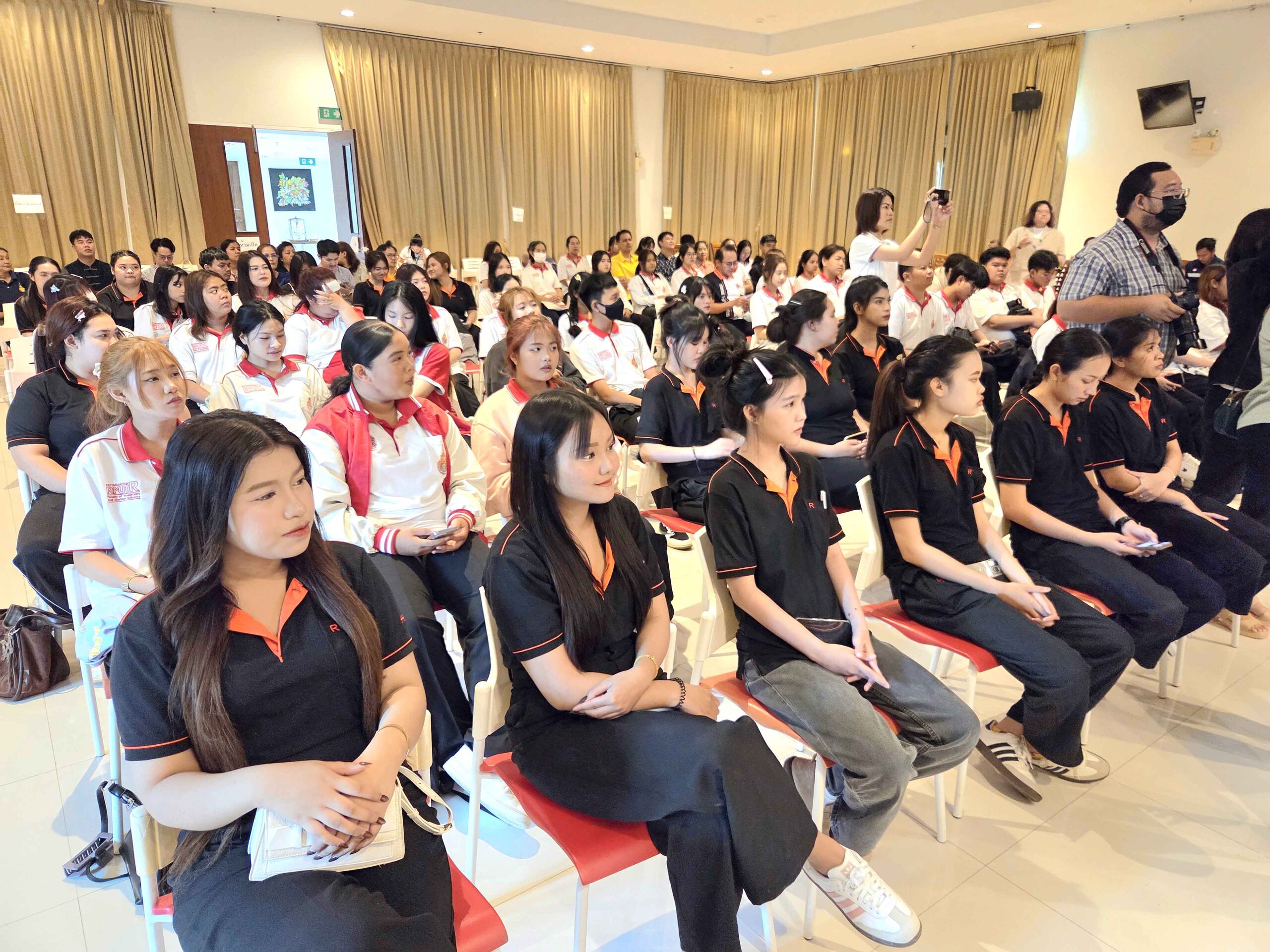 วันที่ 24 กันยายน 2568 ผู้ช่วยศาสตราจารย์นภาพร นาคทิม รองอธิการบดีประจำวิทยาเขตวังไกลกังวล มหาวิทยาลัยเทคโนโลยีราชมงคลรัตนโกสินทร์ เป็นประธานเปิดโครงการ “BDMS อบรมการช่วยชีวิต” Big Campaign รวมพลังสร้างฮีโร่ครั้งใหญ่ เนื่องในวันมหิดล ที่มหาวิทยาลัยเทคโนโลยีราชมงคลรัตนโกสินทร์ วิทยาเขตวังไกลกังวล อ.หัวหิน จ.ประจวบฯ มีนางศศิเพ็ญ ปิยสุทธิ์ ผู้อำนวยการฝ่ายการพยาบาล โรงพยาบาลกรุงเทพหัวหิน และโรงพยาบาลกรุงเทพเพชรบุรี นายเชษฐพล มณีฉาย ผู้จัดการแผนกการตลาดและสื่อสารองค์กร โรงพยาบาลกรุงเทพหัวหิน พร้อมด้วยคณะครูอาจารย์มหาวิทยาลัย นักศึกษาจากสโมสรโรทาแรคท์ มหาวิทยาลัยเทคโนโลยีราชมงคลรัตนโกสินทร์ วิทยาเขตวังไกลกังวล จำนวน 2 รุ่น ทั้งภาคเช้าและภาคบ่าย กว่า 200 คน เข้ารับการอบรม