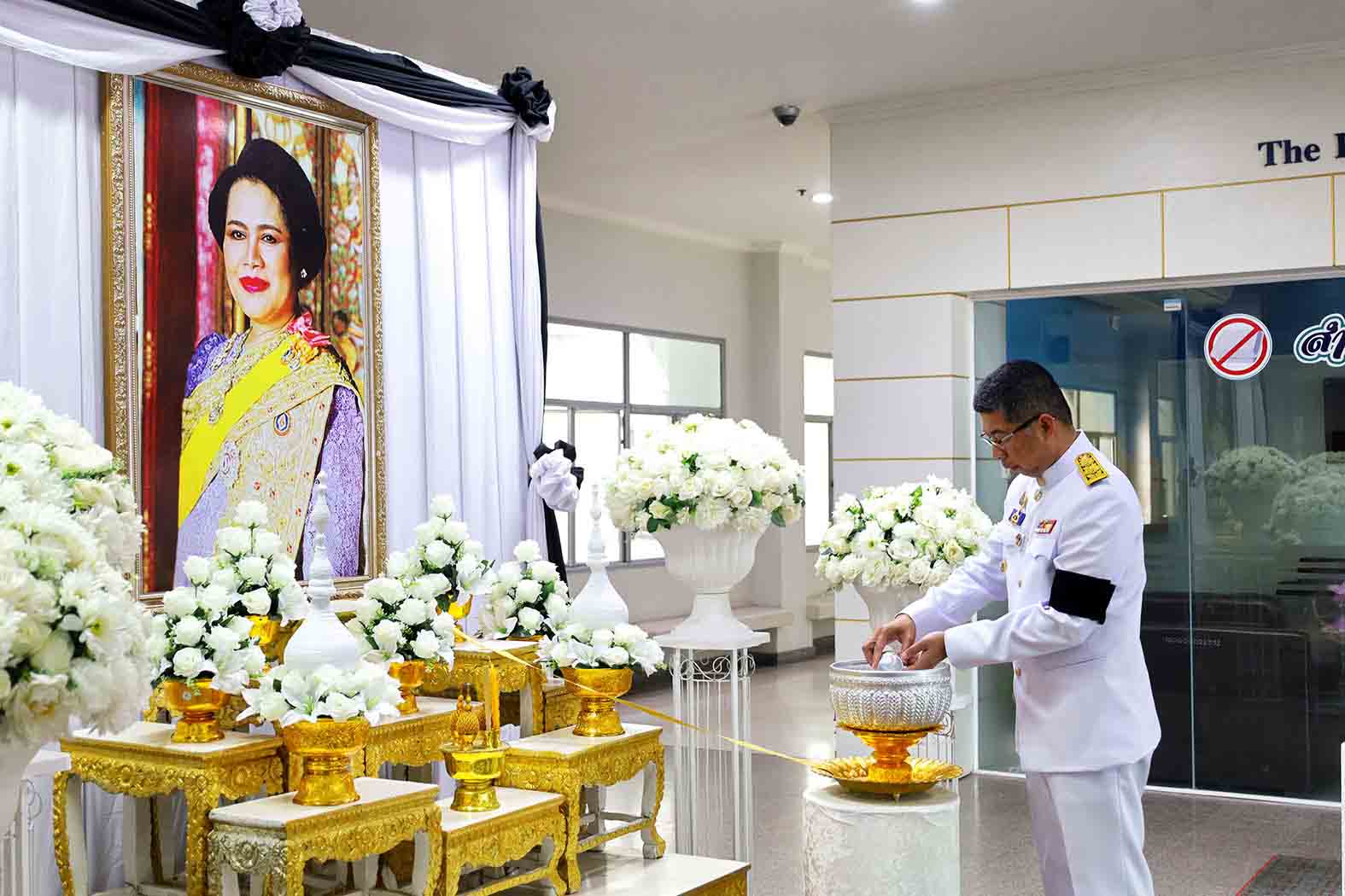 วันที่ 26 ตุลาคม 2568 นายปรีดา สุขใจ รองผู้ว่าราชการจังหวัดประจวบฯ นำหัวหน้าส่วนราชการ ข้าราชการและประชาชนทุกภาคส่วน ถวายน้ำสรงพระบรมศพหน้าพระฉายาลักษณ์ สมเด็จพระนางเจ้าสิริกิติ์ พระบรมราชินีนาถ พระบรมราชชนนีพันปีหลวง ที่โถงชั้น 1 ศาลากลางจังหวัด หลังจากที่กระทรวงมหาดไทยแจ้งให้ทุกจังหวัดจัดสถานที่ให้ประชาชนได้ร่วมถวายน้ำสรงพระบรมศพ เบื้องหน้าพระฉายาลักษณ์สมเด็จพระนางเจ้าสิริกิติ์ พระบรมราชินีนาถ พระบรมราชชนนีพันปีหลวง ตั้งแต่เวลา 08.00 – 16.00 น. ซึ่งทางจังหวัดได้มีการจัดโต๊ะและเก้าอี้สำหรับลงนามแสดงความอาลัย พร้อมตกแต่งอาคารสถานที่ด้วยผ้าขาวดำด้วยความสมพระเกียรติ