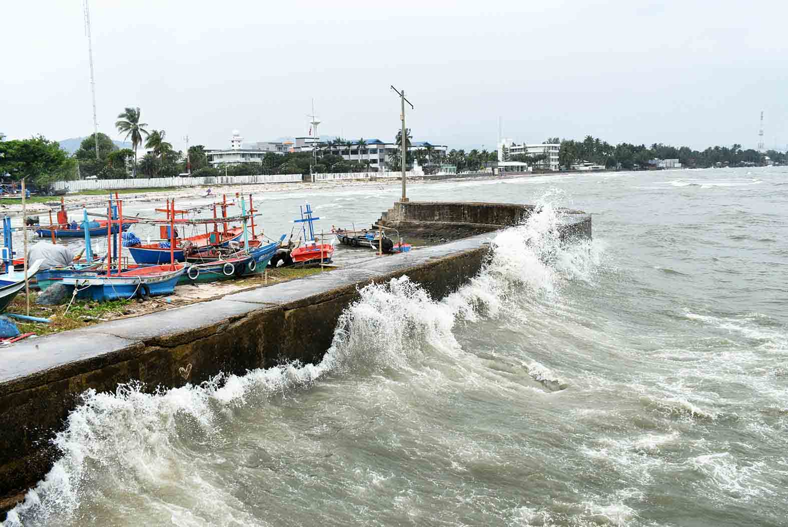 ขณะที่บริเวณท่าเทียบเรือสะพานปลาหัวหิน เรือประมงเล็กชายฝั่งจำนวนมาก ต่างงดออกจากฝั่ง พากันจอดหลบหลังเขื่อนกันคลื่นที่มีคลื่นขนาดสูง 2 เมตร มีแต่เพียงนักตกปลาหย่อนเบ็ดด้วยความสนุกสนาน ส่วนที่บริเวณชายหาดหัวหินตลอดแนวพบว่ามีคลื่นลมแรง น้ำทะเลขุ่นสีคล้ำ สภาพอากาศค่อนข้างปิด นักท่องเที่ยวส่วนใหญ่เดินเล่นบนชายหาด ขณะที่นายจีรวัฒน์ พราหมณี ปลัดเทศบาลนครหัวหิน ได้สั่งการเจ้าหน้าที่รักษาความสงบ (เทศกิจ) ขึ้นธงแดงบริเวณชายหาดหน้าศาลเจ้าแม่ทับทิม ทางลงชายหาดหน้าโรงแรมเซนทาราหัวหินฯ ไปจนถึงหมู่บ้านเขาตะเกียบ รวม 5 จุด ห้ามนักท่องเที่ยวลงเล่นน้ำทะเลโดยเด็ดขาด เพื่อป้องกันการเกิดอันตรายที่จะเกิดขึ้น จนกว่าสถานการณ์จะปกติ.