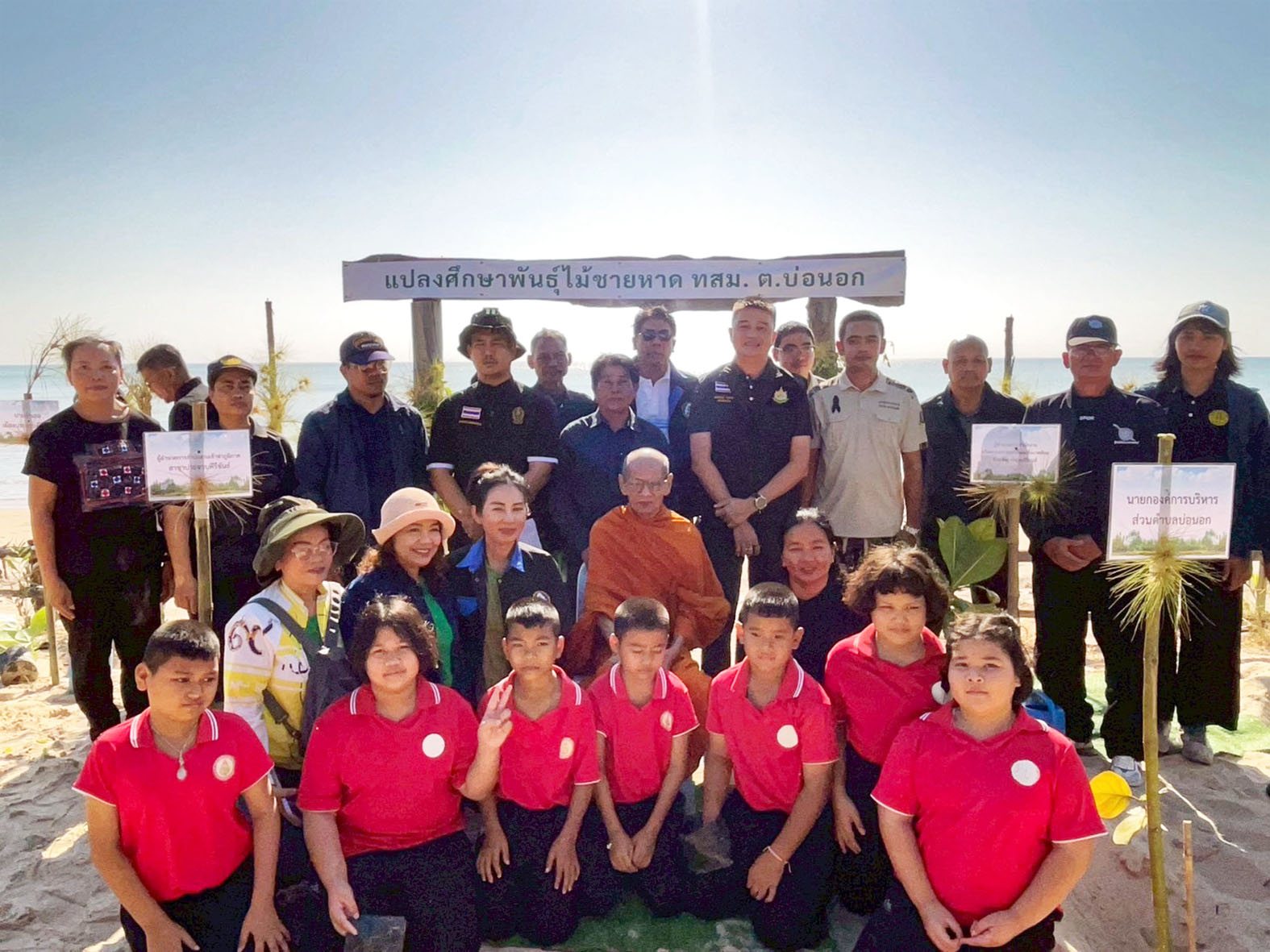 ปลูกต้นไม้สร้างป่าชายหาด…เมื่อวันที่ 24 ธ.ค.68 ที่บริเวณชายหาดบ่อนอก อ.เมืองประจวบฯ นายสมเจตน์ จันทนา ผอ.สำนักงานทรัพยากรธรรมชาติและสิ่งแวดล้อมจังหวัดประจวบฯ เปิดโครงการประชุมเชิงปฏิบัติการส่งเสริมการปลูกต้นไม้สร้างป่าชายหาด และอนุรักษณ์ชายฝั่งทะเล รองรับการเปลี่ยนแปลงสภาพภูมิอากาศ มี เครือข่าย ทสม. คณะครู นักเรียน และเจ้าหน้าที่สำนักงานทรัพยากรธรรมชาติและสิ่งแวดล้อมจังหวัดฯ เข้าร่วมกิจกรรมปลูกต้นไม้ชายหาด จำนวน 100 ต้น และแบ่งกลุ่มเก็บขยะริมชายหาดบ่อนอก จากนั้นมีการบรรยายให้ความรู้เกี่ยวกับแนวทางการจัดการขยะมูลฝอยที่ต้นทางสู่การลดขยะทะเล และแนวทางการจัดการขยะมูลฝอยตามหลักชุมชนไร้ถังขยะ รวมถึงจัดนิทรรศการและฐานเรียนรู้ด้านสิ่งแวดล้อมให้กับนักเรียนและผู้เข้าร่วมโครงการฯ ได้ร่วมรับฟัง.