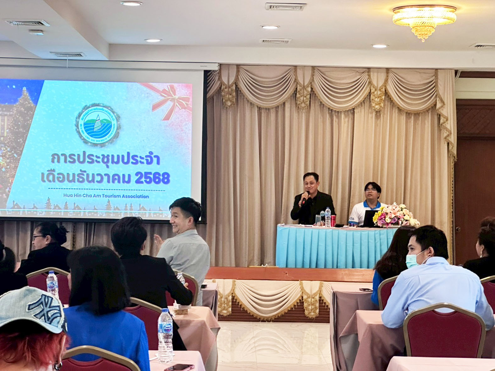 ประชุมสมาคมท่องเที่ยว….เมื่อวันที่ 23 ธ.ค.68 ที่โรงแรมราชมงคลชมคลื่น หัวหิน จ.ประจวบฯ นายกิติพงษ์ สิริเพชรเกษม นายกสมาคมธุรกิจการท่องเที่ยวหัวหิน/ชะอำ เป็นประธานในการประชุมคณะกรรมการและคณะทำงานประจำเดือนธันวาคม 2568 ซึ่งจัดขึ้นในรูปแบบการประชุมสัญจร โดยมีนางวาสนา ศรีกาญจนา ที่ปรึกษาสมาคมฯ พร้อมด้วยคณะกรรมการ อาจารย์มหาวิทยาลัยเทคโนโลยีราชมงคลรัตนโกสินทร์ วิทยาเขตวังไกลกังวลเข้าร่วมประชุม โดยมุ่งเน้นการหารือแนวทางการจัดกิจกรรมเพื่อกระตุ้นการท่องเที่ยวในพื้นที่หัวหิน–ชะอำ และจังหวัดใกล้เคียง อาทิ การระดมความคิดในการพัฒนาเส้นทางท่องเที่ยวรูปแบบใหม่ การวางแผนการดำเนินงานในช่วงปลายปี เพื่อส่งเสริมภาพลักษณ์ของพื้นที่ให้เป็นแหล่งท่องเที่ยวยอดนิยมอย่างต่อเนื่อง ควบคู่กับการแลกเปลี่ยนความคิดเห็นด้านการพัฒนาศักยภาพของสมาคมฯ การเสริมสร้างความร่วมมือกับภาคีเครือข่าย และการส่งเสริมความสัมพันธ์อันดีภายในองค์กร เพื่อขับเคลื่อนการดำเนินงานของสมาคมฯ ให้เกิดความต่อเนื่องและมีประสิทธิภาพยิ่งขึ้น.