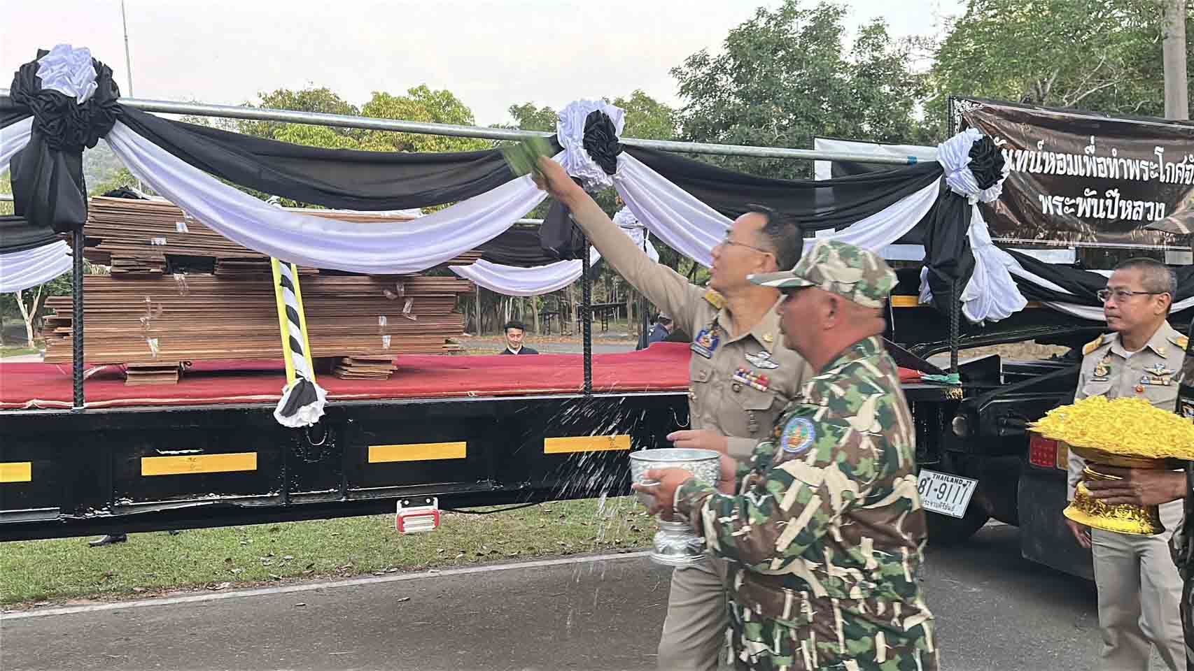 วันที่ 25 ธันวาคม 2568 พันจ่าเอกสาคร สิทธิศักดิ์ รองผู้ว่าราชการจังหวัดประจวบฯ เป็นประธานพิธีส่งมอบไม้จันทน์หอมสำหรับนำไปจัดสร้างพระโกศจันทน์ เพื่อใช้ในงานพระราชพิธีถวายพระเพลิงพระบรมศพ สมเด็จพระนางเจ้าสิริกิติ์ พระบรมราชินีนาถพระบรมราชชนนีพันปีหลวง ที่อุทยานแห่งชาติกุยบุรี อ.กุยบุรี จ.ประจวบฯ โดยมีนายนิทัศน์ นุ่นสง ผู้อำนวยการสำนักบริหารพื้นที่อนุรักษ์ที่ 3 สาขาเพชรบุรี, นายนพพล สุกิจปราณีนิจ นายอำเภอกุยบุรี และ นายบำรุงรัตน์ พลอยดำ หัวหน้าอุทยานแห่งชาติกุยบุรี หัวหน้าส่วนราชการ ข้าราชการ เจ้าหน้าที่อุทยานแห่งชาติกุยบุรี และประชาชนจำนวนมากร่วมพิธี โดยรองผู้ว่าราชการจังหวัด ประกอบพิธีถวายราชสักการะเบื้องหน้าพระฉายาลักษณ์ฯ จากนั้นสรงน้ำไม้จันทน์หอม โปรยดอกไม้โดยรอบ ก่อนที่ขบวนรถเชิญไม้จันทน์หอมจะเคลื่อนออกจากอุทยานแห่งชาติกุยบุรี ตามฤกษ์เวลา 06.49 น. มุ่งหน้าไปยังสำนักช่างสิบหมู่ กรมศิลปากร จ.นครปฐม และประกอบพิธีรับมอบไม้จันทน์หอมในช่วงบ่ายวันนี้ โดยไม้จันทน์หอมที่ส่งมอบในวันนี้เป็นไม้จันทน์หอมที่ยืนต้นตายตามธรรมชาติ และผ่านการประกอบพิธีบวงสรวงและตัดไม้จันทน์หอม เมื่อวันที่ 6 ธันวาคม 2568 จากนั้น อุทยานแห่งชาติกุยบุรี ได้ดำเนินการแปรรูปเป็นขนาดต่างๆ เพื่อส่งมอบให้สำนักช่างสิบหมู่นำไปจัดสร้างพระโกศจันทน์ตามแผนงานที่วางไว้