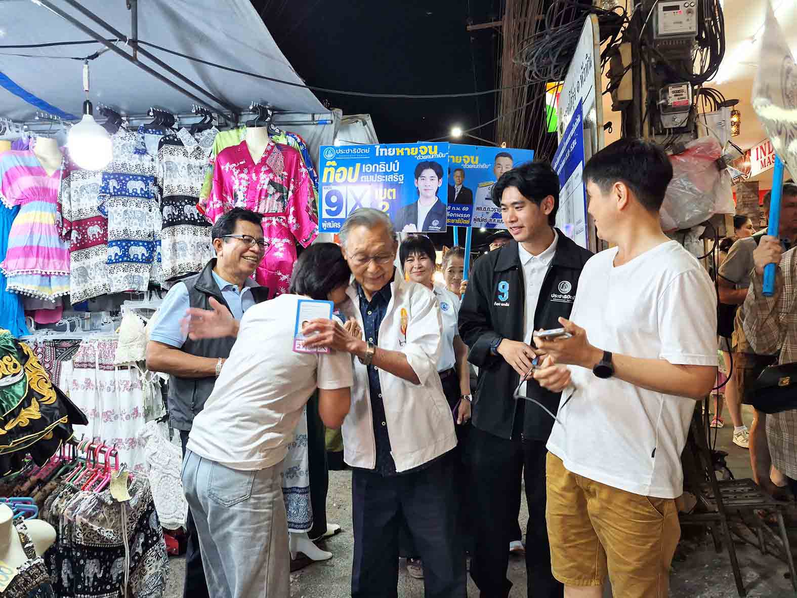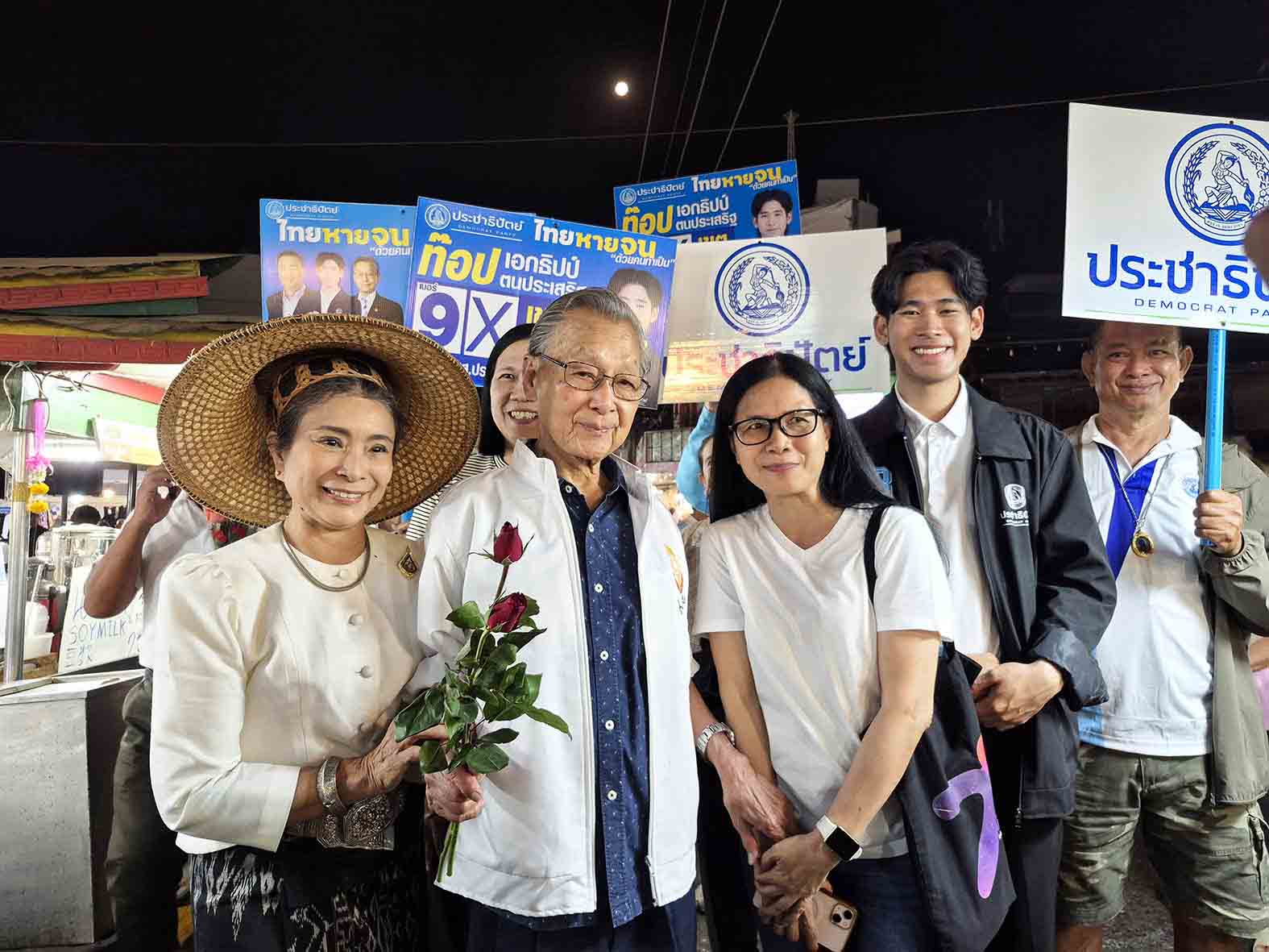 ช่วงค่ำวันที่ 1 ก.พ.69 นายชวน หลีกภัย อดีตนายกรัฐมนตรี, อดีตหัวหน้าพรรคประชาธิปัตย์ และผู้สมัคร สส.บัญชีรายชื่อ พร้อมด้วย พล.ต.ท.วรายุทธ สุขวัฒน์ ผู้สมัคร สส.บัญชีรายชื่อ พรรคประชาธิปัตย์ ดร.สมชาย กระแจะเจิม รองผู้อำนวยการเลือกตั้งพื้นที่ภาคกลาง พรรคประชาธิปัตย์ ลงพื้นที่หาเสียงให้นายเอกธิปป์ ตนประเสริฐ ผู้สมัคร สส.เขต 2 จ.ประจวบฯ หมายเลข 9 ภายในตลาดโต้รุ่งหัวหิน จ.ประจวบฯ โดยมีประชาชนนักท่องเที่ยว พ่อค้าแม่ค้าเข้ามาทักทายมอบดอกไม้ ขอถ่ายรูป และให้กำลังใจอย่างอบอุ่น