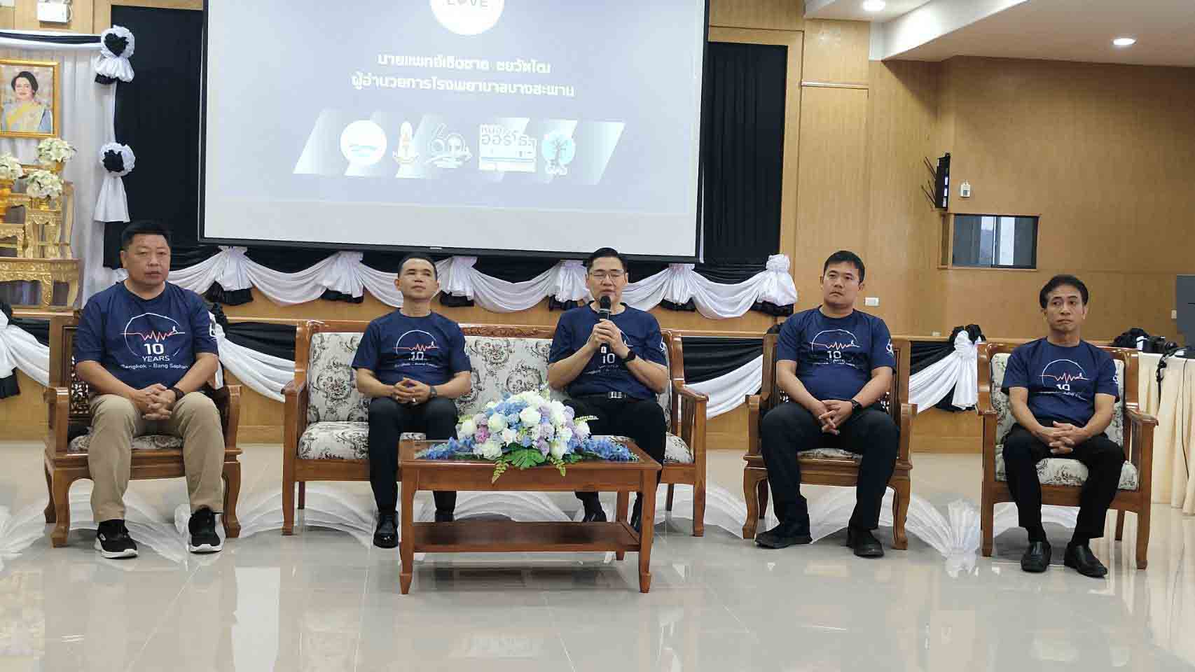 วันที่ 30 มกราคม 2569 นายนิมิต วงษ์จินดา นายอำเภอบางสะพาน นพ.เชิดชาย ชยวัฑโฒ ผู้อำนวยการโรงพยาบาลบางสะพาน ร่วมกันแถลงข่าวและถ่ายทอดวิสัยทัศน์ “ก้าวต่อไปเพื่ออนาคตสาธารณสุขบางสะพาน”เชิญชวนร่วมรำลึก 10 ปีแห่งตำนานการให้ ณ ห้องประชุมก้าวด้วยรัก ชั้น 5 อาคารผู้ป่วยนอก โรงพยาบาลบางสะพาน จ.ประจวบฯ โดยมีบุคคลสำคัญร่วมขับเคลื่อนโครงการ ยืนยันความพร้อมของพื้นที่และการบูรณาการทุกภาคส่วน เพื่อความปลอดภัยและกระตุ้นเศรษฐกิจชุมชน อาทิ พ.ต.อ.ตะวัน ตระการฤกษ์ ผกก.สภ.บางสะพาน ชี้แจงแผนดูแลความปลอดภัยและการจราจรตลอดเส้นทางวิ่ง, นายเจริญ เจริญลักษณ์ สาธารณสุขอำเภอบางสะพาน นำพลังสนับสนุนจาก อสม. กว่า 500 คน จาก 7 ตำบล มาร่วม,