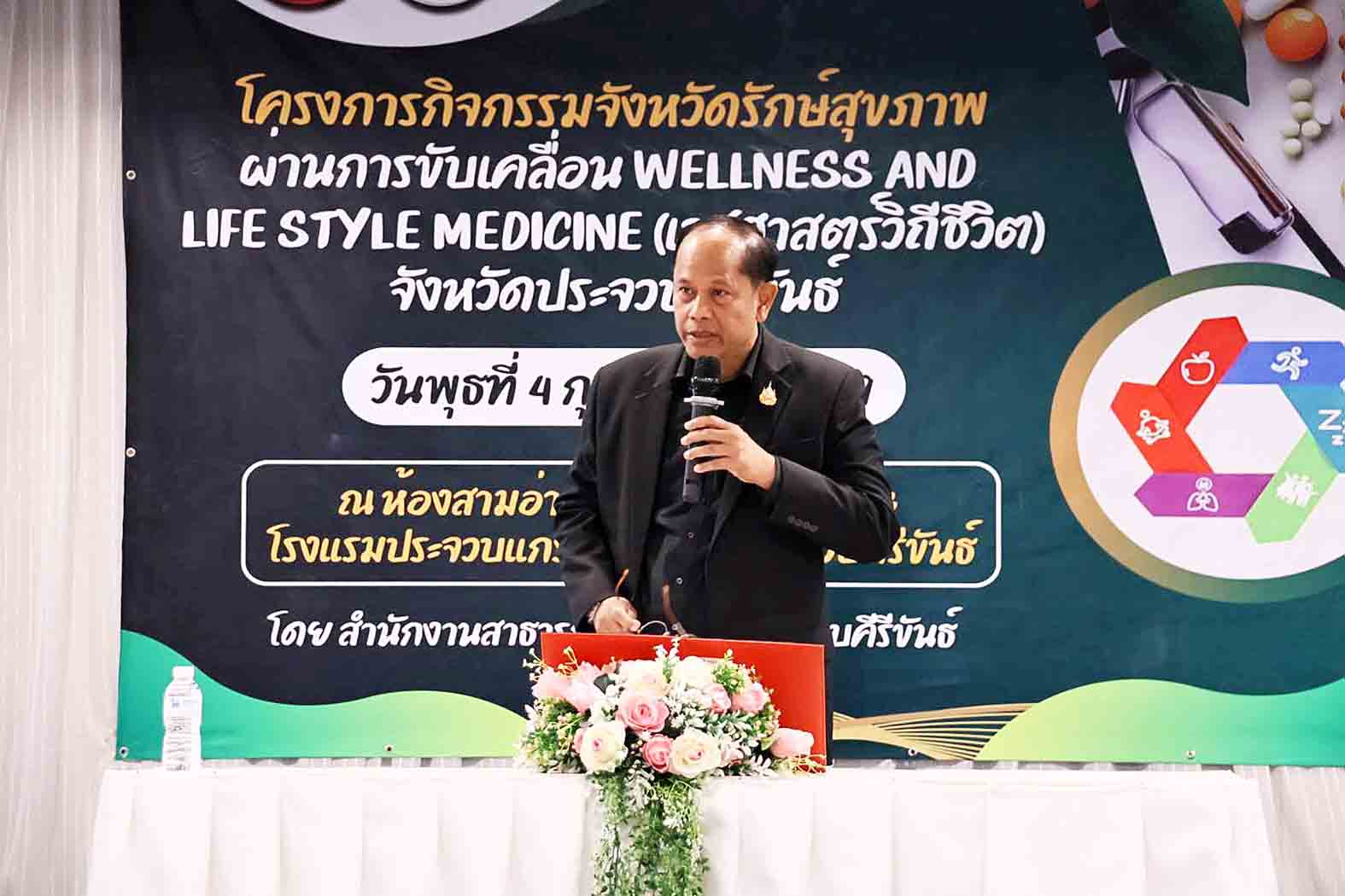 นายสิทธิชัย สวัสดิ์แสน กล่าวว่า ปัจจุบันสังคมไทยกำลังก้าวเข้าสู่สังคมผู้สูงอายุโดยสมบูรณ์ และโรคไม่ติดต่อเรื้อรัง (NCDs) กำลังเป็นภัยคุกคามสุขภาพที่สำคัญของประชาชนทุกช่วงวัย การที่จังหวัดประจวบฯ ได้ริเริ่มขับเคลื่อนนโยบาย Wellness และ Lifestyle Medicine จึงเป็นการวางรากฐานที่มั่นคงสำหรับอนาคต จังหวัดประจวบฯ มีศักยภาพและทรัพยากรที่เหมาะสมอย่างยิ่งในการเป็น “เมืองต้นแบบ Wellness City” ด้วยความได้เปรียบทางภูมิศาสตร์ ที่มีทั้งภูเขาและทะเล อากาศดี ธรรมชาติสมบูรณ์ อาหารทะเลสด ผลไม้ท้องถิ่นอุดมสมบูรณ์ รวมถึงวิถีชีวิตดั้งเดิมของชาวประจวบฯ ที่เอื้อต่อการมีสุขภาพดี หากสามารถบูรณาการจุดแข็งเหล่านี้เข้ากับองค์ความรู้ด้านเวชศาสตร์วิถีชีวิต จะทำให้จังหวัดประจวบฯ เป็นจุดหมายปลายทางด้านสุขภาพที่ผู้คนทั้งในประเทศและต่างประเทศอยากมาพำนักระยะยาว (Long-stay) ตามวิสัยทัศน์ “พลิกโฉม จังหวัดรักษ์สุขภาพประจวบคีรีขันธ์ สู่เมืองต้นแบบ Wellness City ด้วยโมเดลเศรษฐกิจสุขภาพและเวชศาสตร์วิถีชีวิต” ซึ่งต้องทำร่วมกันพร้อมกันทั้งจังหวัด.