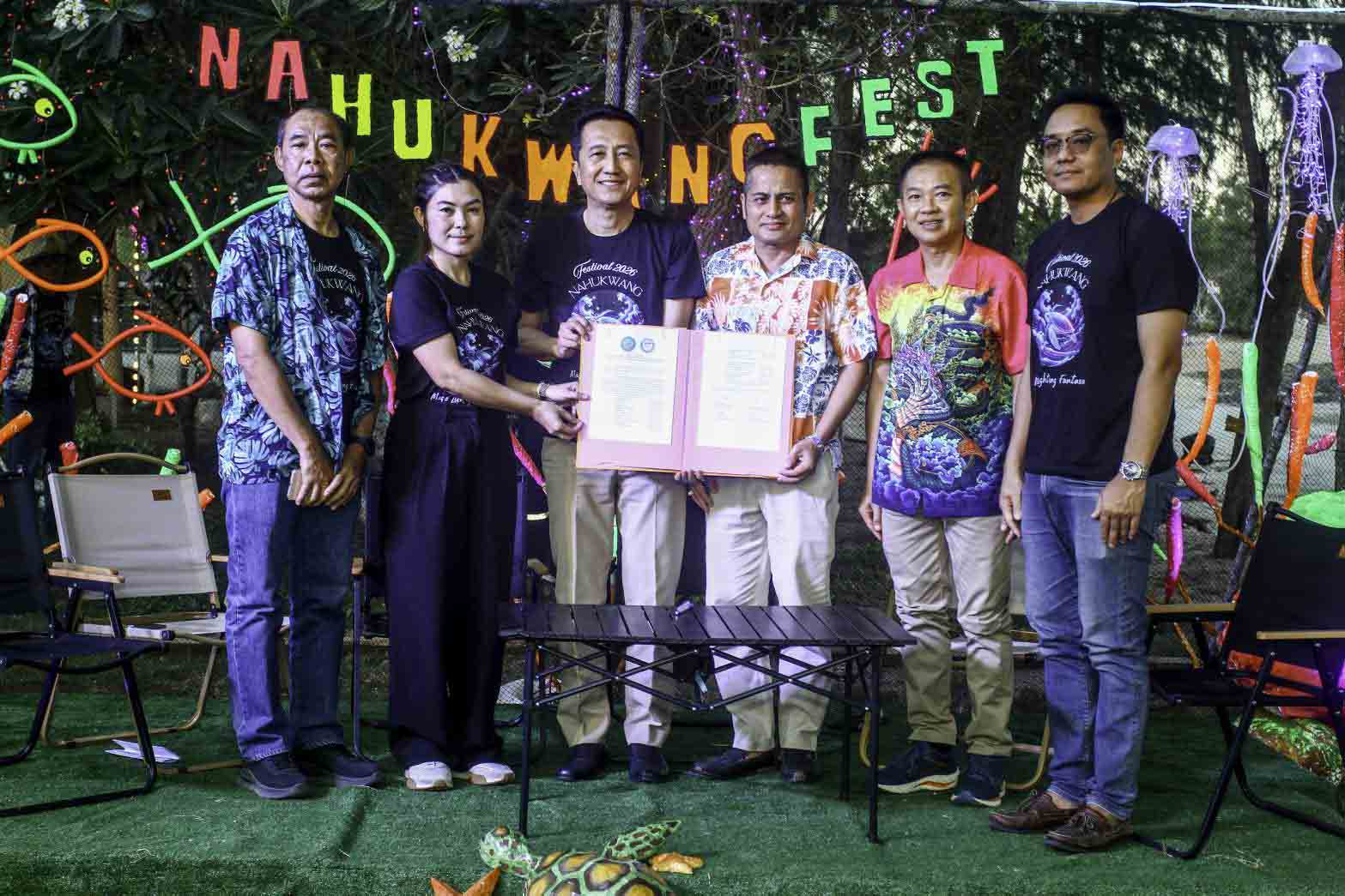 วันที่ 30 มีนาคม 2569 นายมนต์ชัย หนูสาย นายอำเภอทับสะแก เป็นประธานแถลงข่าวการจัดงานนาหูกวางเฟสติวัล 2026 ตอนมหัศจรรย์ ไลท์ติ้งแฟนตาซี มีนายสราวุธ ลิ้มอรุณรักษ์ นายก อบจ.ประจวบฯ นายอิษฎา เสาวรส ผู้อำนวยการ ททท.สำนักงาน จ.ประจวบคีรีขันธ์, นายธรรมรัตน์ สิงห์ศรี ปลัด อบจ.ประจวบฯ, นายชัยนรินทร์ นิลธนาเกียรติ, นายวสุ โชคกิจการ, นายลือยศ ภู่ทอง สจ.เขตอำเภอทับสะแก, น.ส.ทิฆัมพร ยอดใหญ่ นายก อบต.นาหูกวาง พร้อมคณะผู้บริหาร หัวหน้าส่วนราชการ และแขกผู้มีเกียรติเข้าร่วมงาน