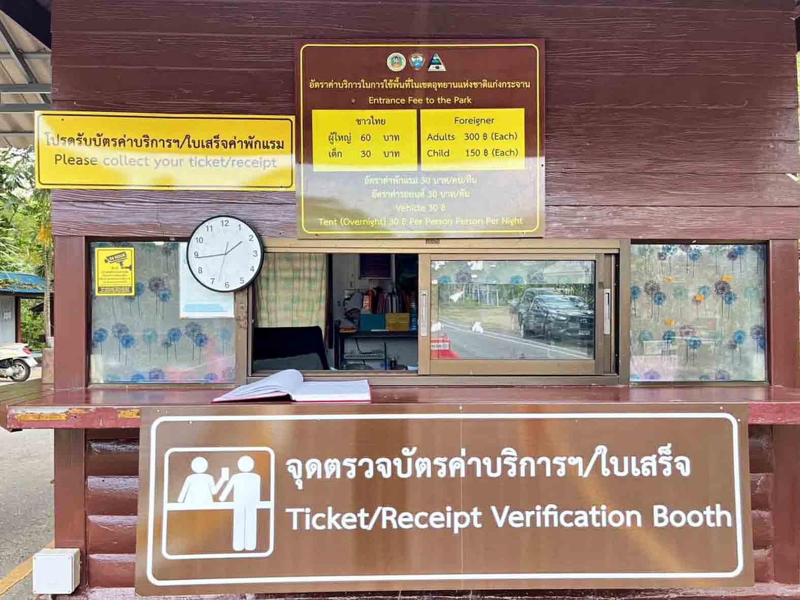 อัตราการเข้าชม คนไทย : เด็ก 30 บาท/คน ผู้ใหญ่ 60 บาท/คน, ชาวต่างชาติ : เด็ก 150 บาท/คน ผู้ใหญ่ 300 บาท/คน, ค่าพักแรม 30 บาท ต่อคน/ต่อคืน, ค่ารถยนต์ 30 บาท ต่อคัน, ค่ารถจักรยานยนต์ 20 บาท ต่อคัน หรือสอบถามได้ทางเพจเฟซบุ๊ก : อุทยานแห่งชาติแก่งกระจาน – Kaeng Krachan National Park.