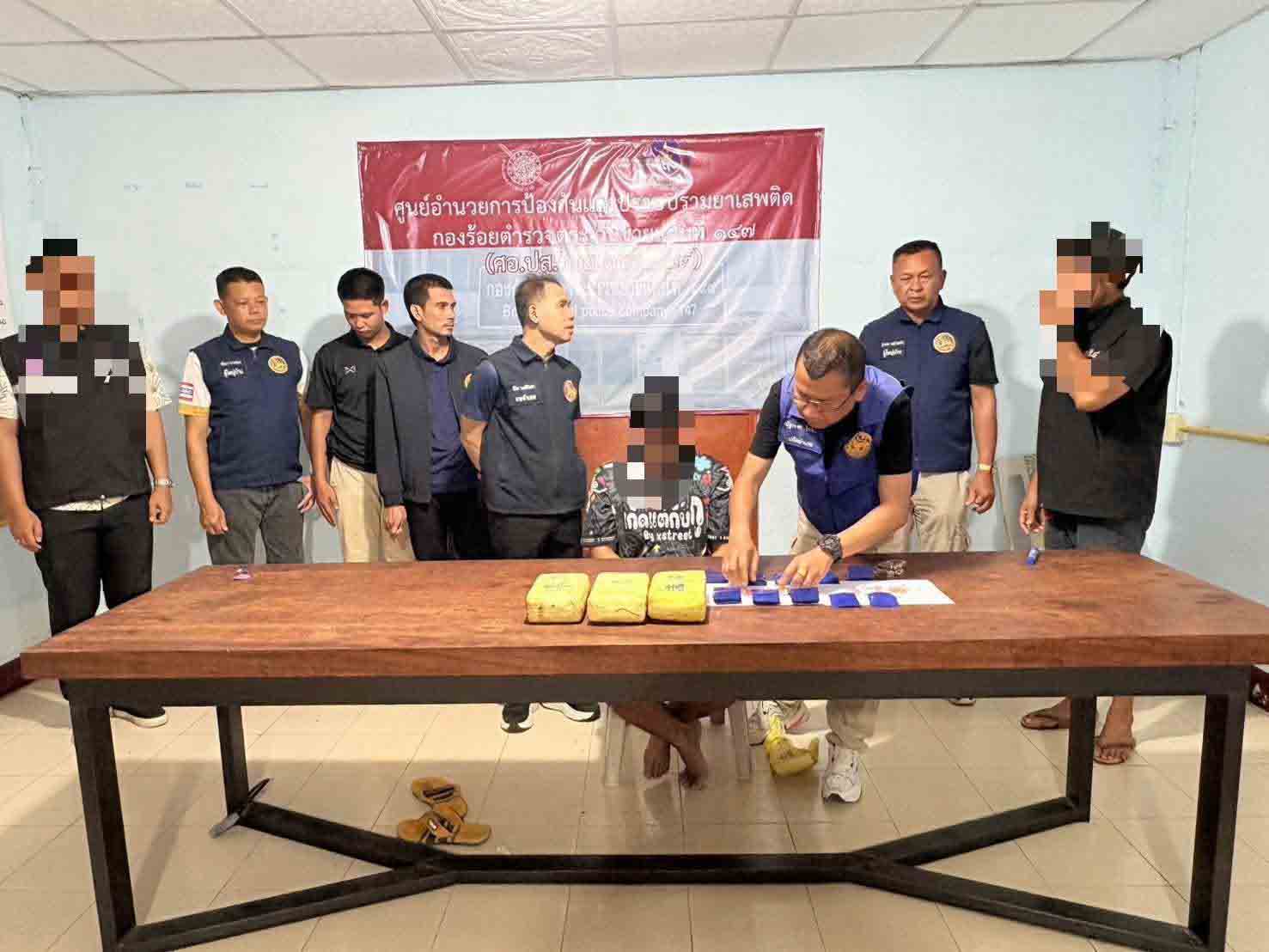 หลังจากได้รับรายงานว่ามีกลุ่มผู้ค้าลักลอบจำหน่ายยาเสพติดให้วัยรุ่นในพื้นที่ เจ้าหน้าที่จึงวางแผนส่งสายลับติดต่อขอซื้อยาบ้าจำนวน 195 เม็ด บริเวณหน้าบ้านเลขที่ 164 หมู่ 2 ต.ทองมงคล เมื่อถึงเวลานัดหมาย ผู้ต้องหาได้นำของกลางมาส่ง เจ้าหน้าที่จึงแสดงตัวเข้าจับกุมทันที คือ น.ส.ขนิษฐา อายุ 38 ปี และนายพงษ์คณิต อายุ 36 ปี ซึ่งทั้งสองคนพยายามวิ่งหนี แต่ไม่รอด ถูกเจ้าหน้าที่ชาร์จตัวไว้ได้ แล้วตรวจค้นตัว เบื้องต้นพบยาบ้าอีก 585 เม็ด แต่เจ้าหน้าที่เชื่อว่ายังมีของกลางมากกว่านั้น จึงสอบสวนเค้นความจริง จจนผู้ต้องหายอมเปิดปากสารภาพและนำไปชี้จุดซ่อนยาบ้าล็อตใหญ่ที่บริเวณกอหญ้าริมสระน้ำหลังบ้านอีก รวมทั้งสิ้น 31,980 เม็ด