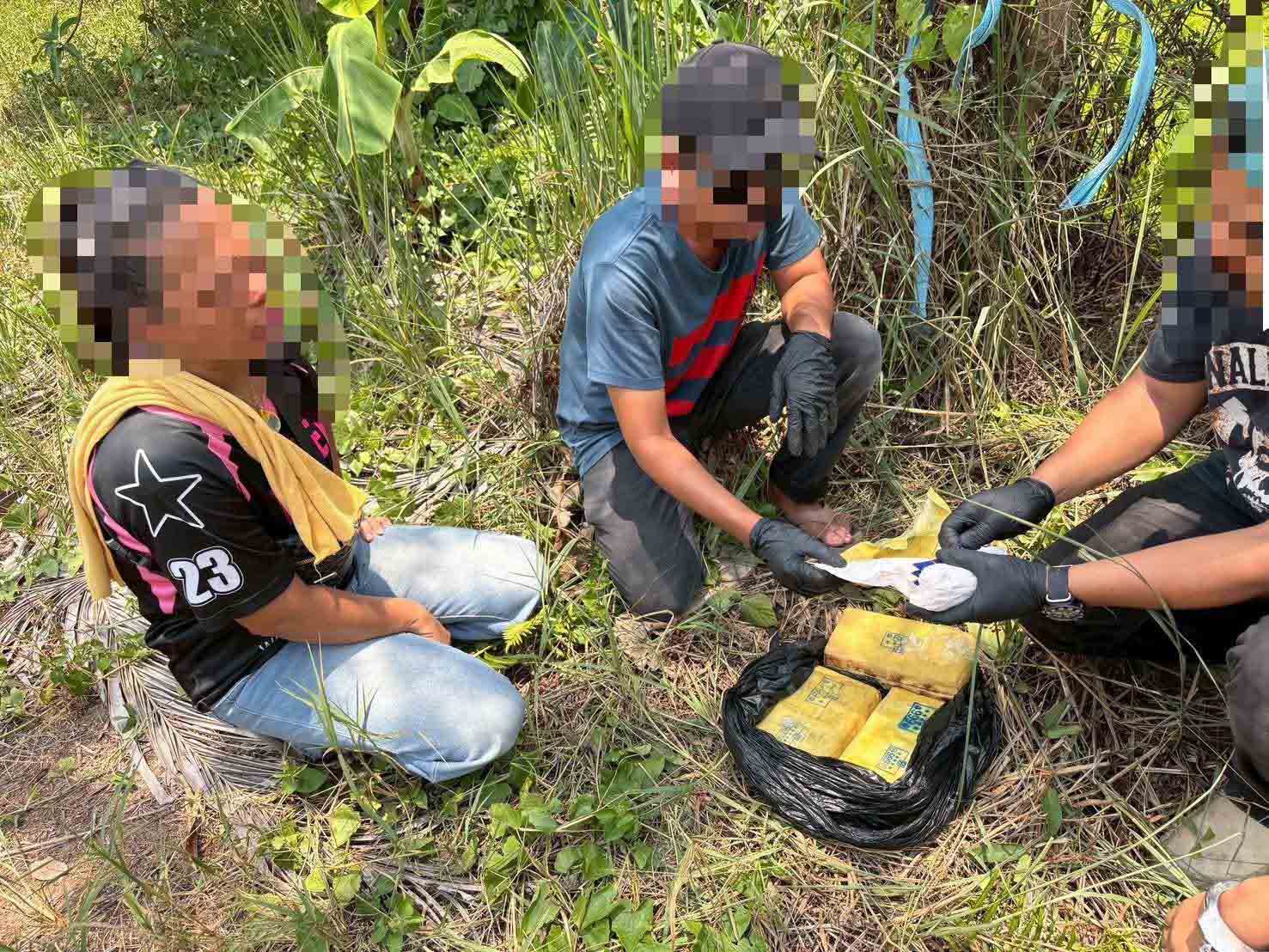 บุกรวบ “คู่หูทองมงคล” ยึดยาบ้าซุกกอหญ้าริมสระ