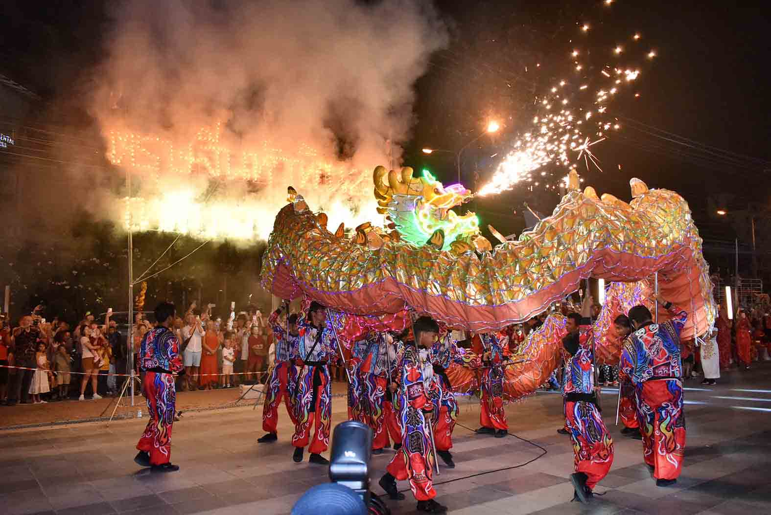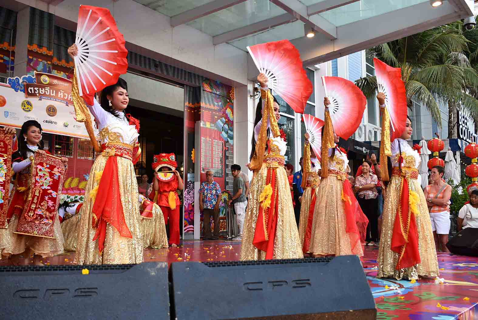 ภายหลังนายสุวัจน์กล่าวเปิดงานและกล่าวอวยพรชาวหัวหิน ชาวไทยและคนไทยเชื้อสายจีนในเทศกาลตรุษจีนแล้ว ได้ร่วมกับแขกผู้มีเกียรติ ผัดหมี่ซั่วมงคลกระทะยักษ์ ซึ่งชาวจีนมีความเชื่อว่า หากกินหมี่ซั่วจะมีอายุยืนยาวเหมือนเส้นบะหมี่ แจกจ่ายให้กับประชาชนนักท่องเที่ยวที่มาร่วมงานได้รับประทาน พร้อมชมการแสดงเชิดสิงโตและมังกรพ่นไฟสุดตระการตา ซึ่งถือเป็นสัญลักษณ์แห่งความเป็นสิริมงคลในเทศกาลตรุษจีนตามความเชื่อที่สืบทอดกันมา การเชิดสิงโตและมังกรเปรียบเสมือนการนำพาพลังแห่งความโชคดี ความเจริญรุ่งเรือง และความสำเร็จมาสู่พื้นที่จัดงาน สร้างความตื่นตาตื่นใจและความอิ่มเอมใจให้กับประชาชนและนักท่องเที่ยวที่มาร่วมเฉลิมฉลองตรุษจีนในครั้งนี้.