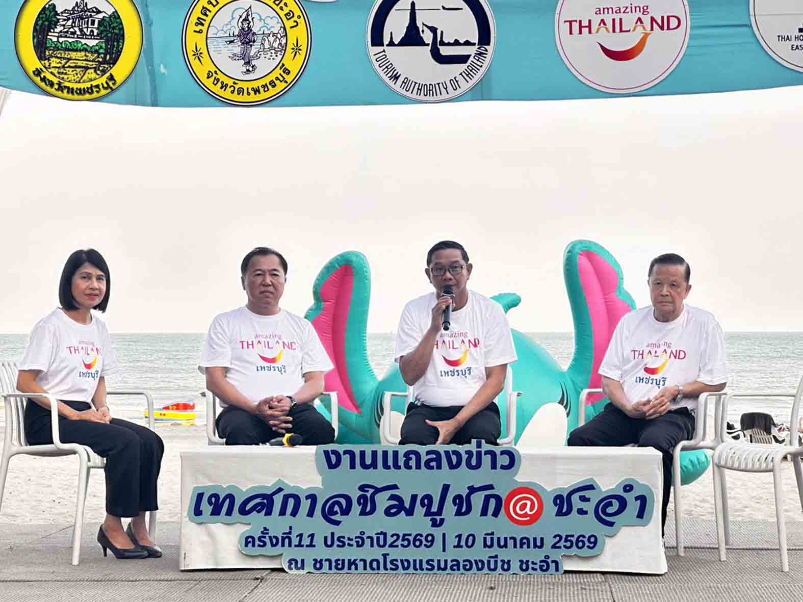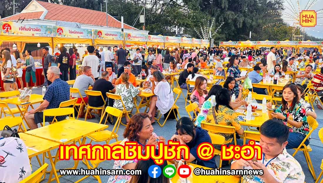 ช่วงค่ำวันที่ 14 มีนาคม 2569 ร.ต.ท.ภพชนก ชลานุเคราะห์ ผู้ว่าราชการจังหวัดเพชรบุรี เป็นประธานเปิดงานเทศกาลชิมปูชัก @ ชะอำ ครั้งที่ 11 พร้อมด้วย นายภคพัส ส่งวัฒนายุทธ รองผู้ว่าฯ เพชรบุรี นายพลกฤต พวงวลัยสิน ปลัดจังหวัดเพชรบุรี นายแก้ว คงวงศ์ นายอำเภอชะอำ นายนุกูล พรสมบูรณ์สิริ นายกเทศมนตรีเมืองชะอำ นางดวงใจ คุ้มสอาด ผู้อำนวยการ ททท.สำนักงานเพชรบุรี นายวสันต์ กิตติกุล นายกสมาคมโรงแรมไทยภาคตะวันตก พ.ต.อ.อภิรักษ์ เพิ่มชัย ผกก.สภ.ชะอำ ชมรมเชฟชะอำ/หัวหิน แขกผู้มีเกียรติ นักท่องเที่ยวทั้งชาวไทยและต่างชาติจำนวนมากเข้าร่วมชมงานและชิมปูม้า อาหารทะเลกันอย่างคึกคัก